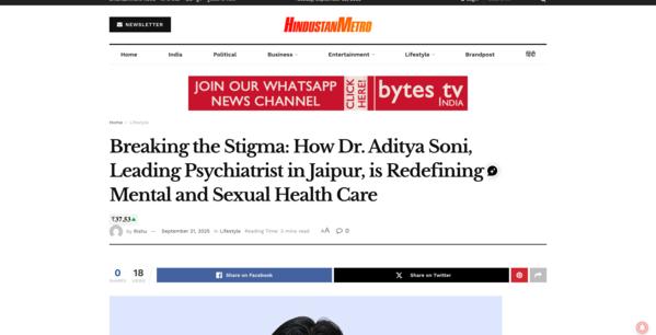 Breaking the Stigma:How Dr. Aditya Soni, Leading Psychiatrist in Jaipur, is Redefining Mental Health